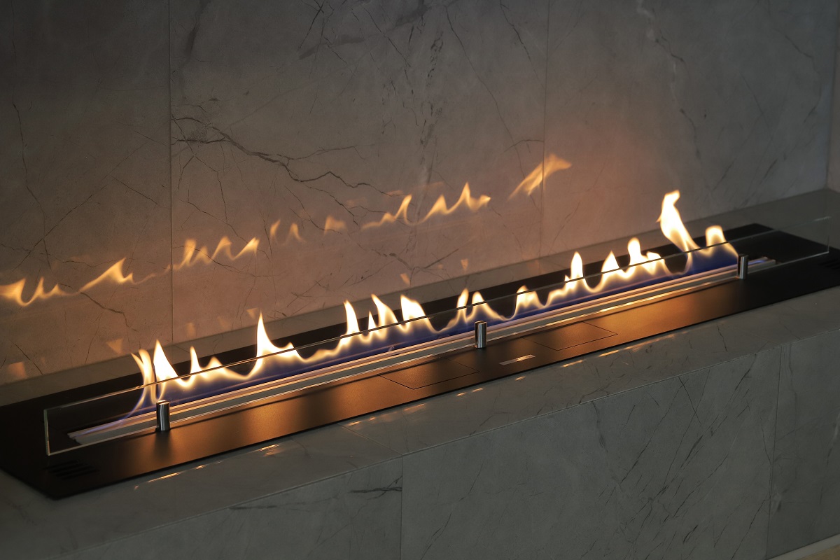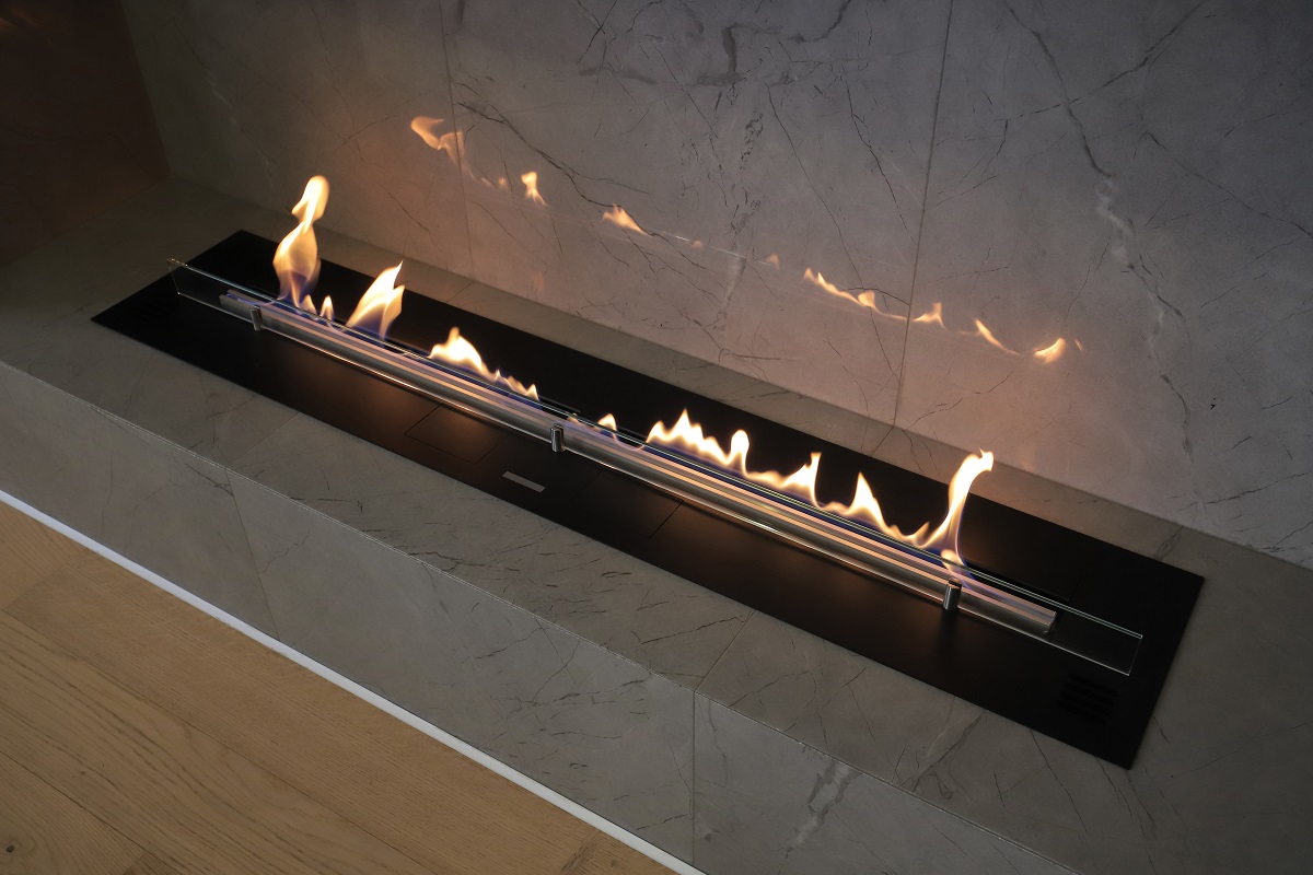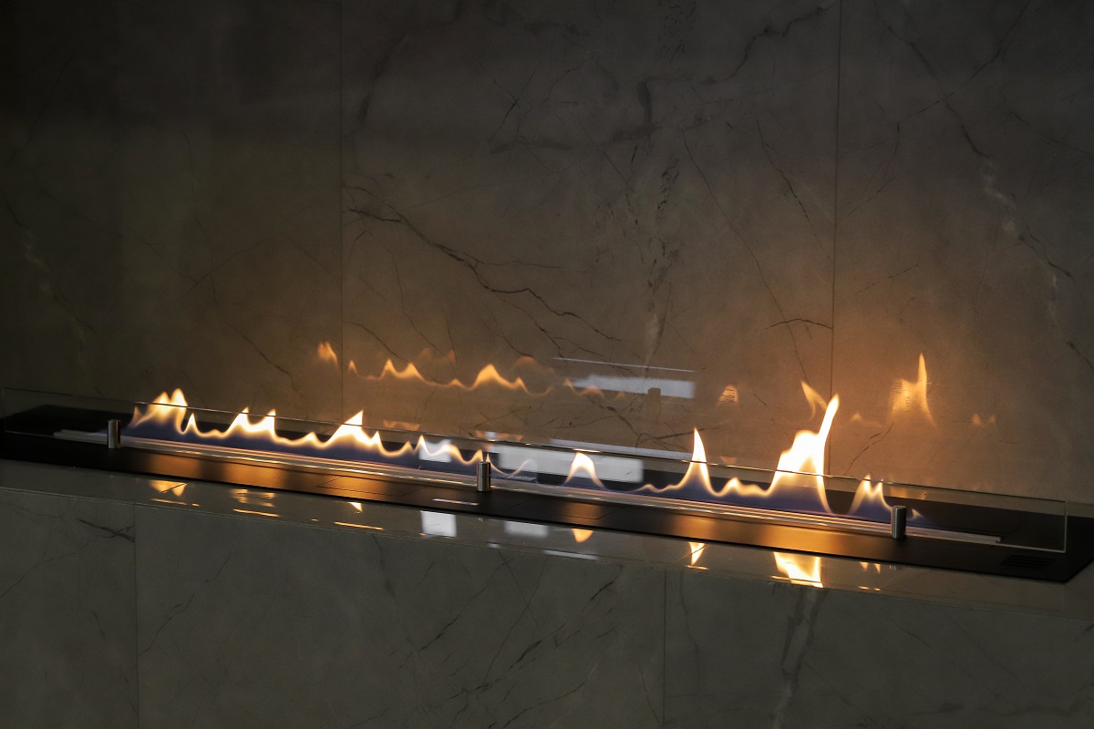 В проекте использовалась модель камина Primefire с длиной линии огня 990 мм, еще одной особенностью данной модели с пометкой “+” является увеличенный объем топливного бака, позволяющий дольше наслаждаться танцем чистого пламени.