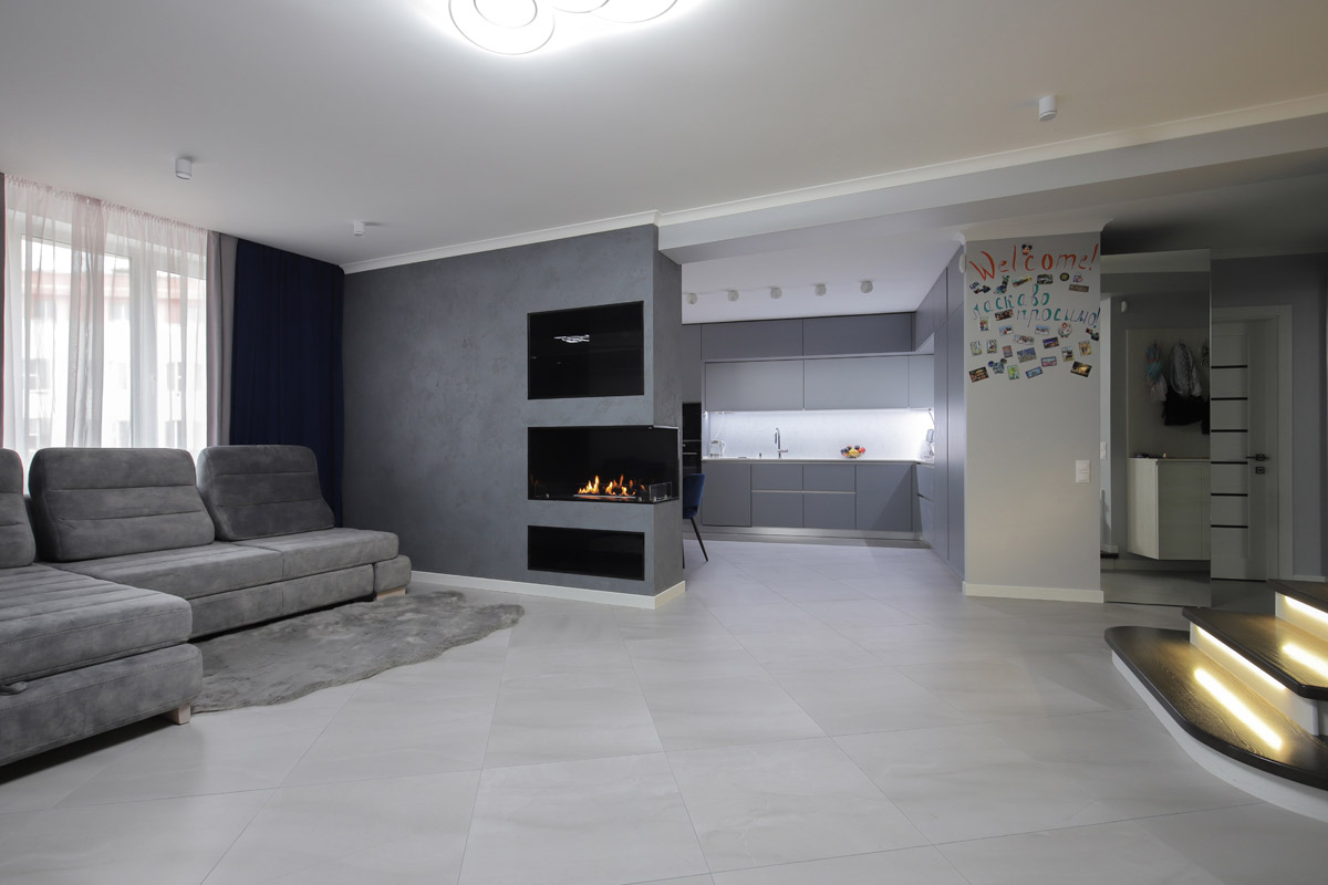 Берем биокамин Primefire, как в представленном проекте, специальный защитный короб соответствующей конфигурации, подготавливаем портал для встройки.