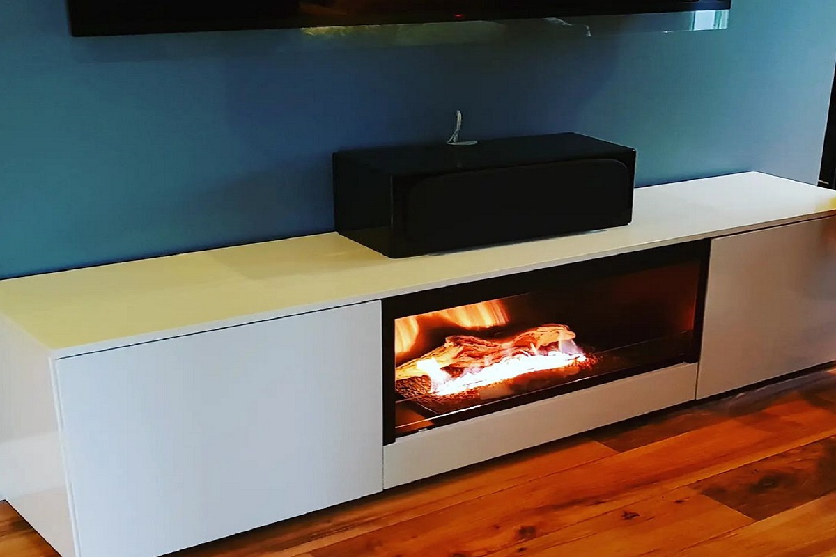Конструкция позволяет устанавливать телевизор, саундбар, AV-ресивер или вообще, что угодно сверху на тумбу, без опасений, что наличие живого огня под ними сможет как-то навредить.