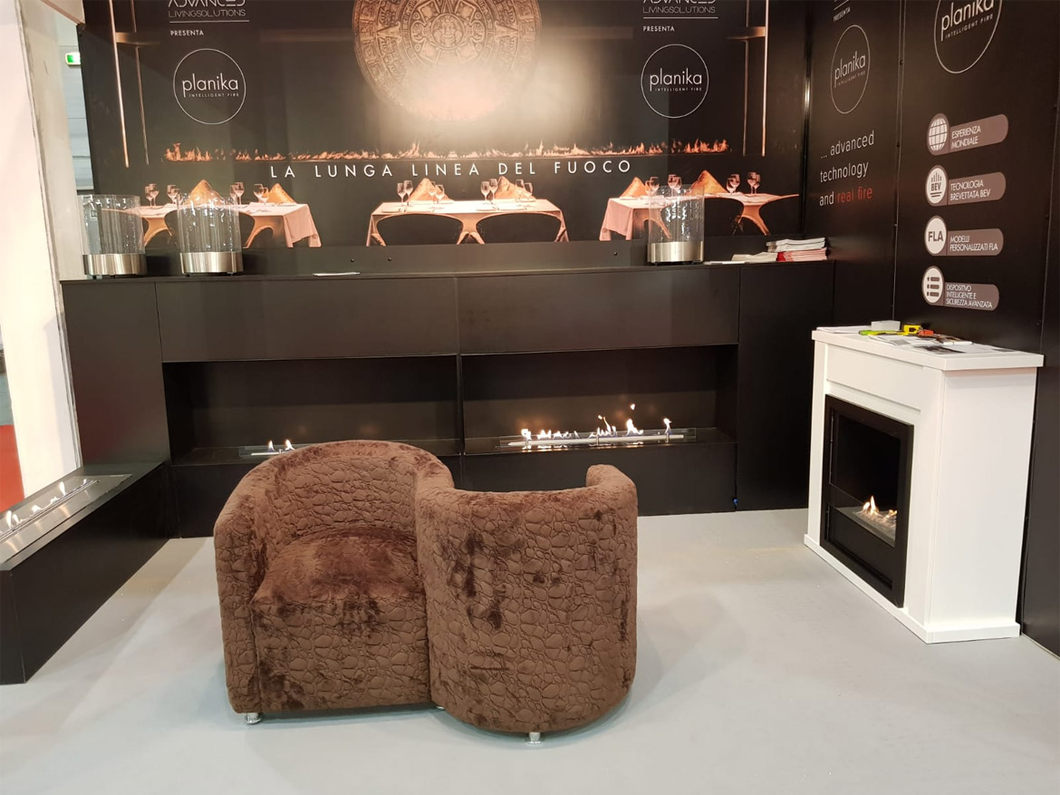В этом году на выставке дистрибьютор Planika — компания Advanced Living Solutions Srl — демонстрирует одни из самых престижных каминов польского бренда.