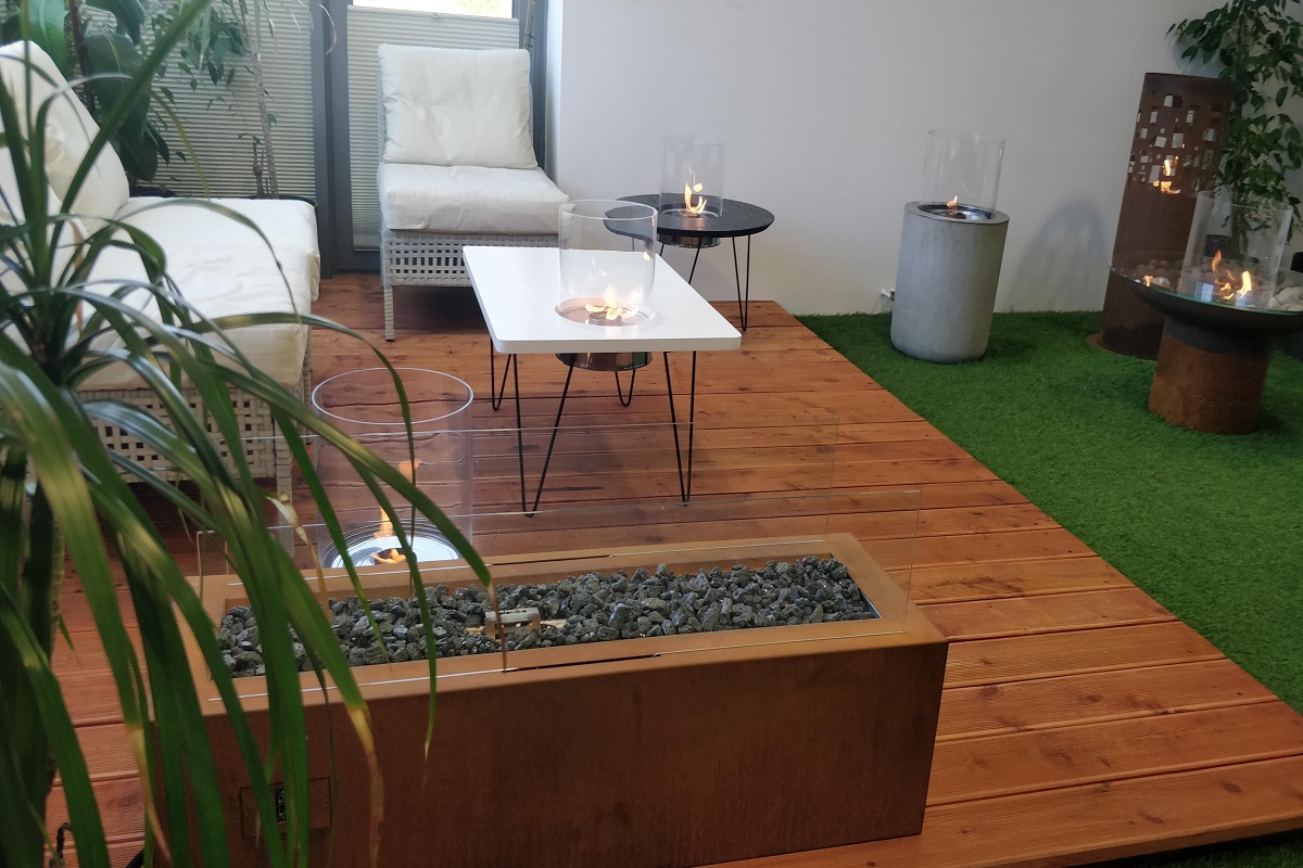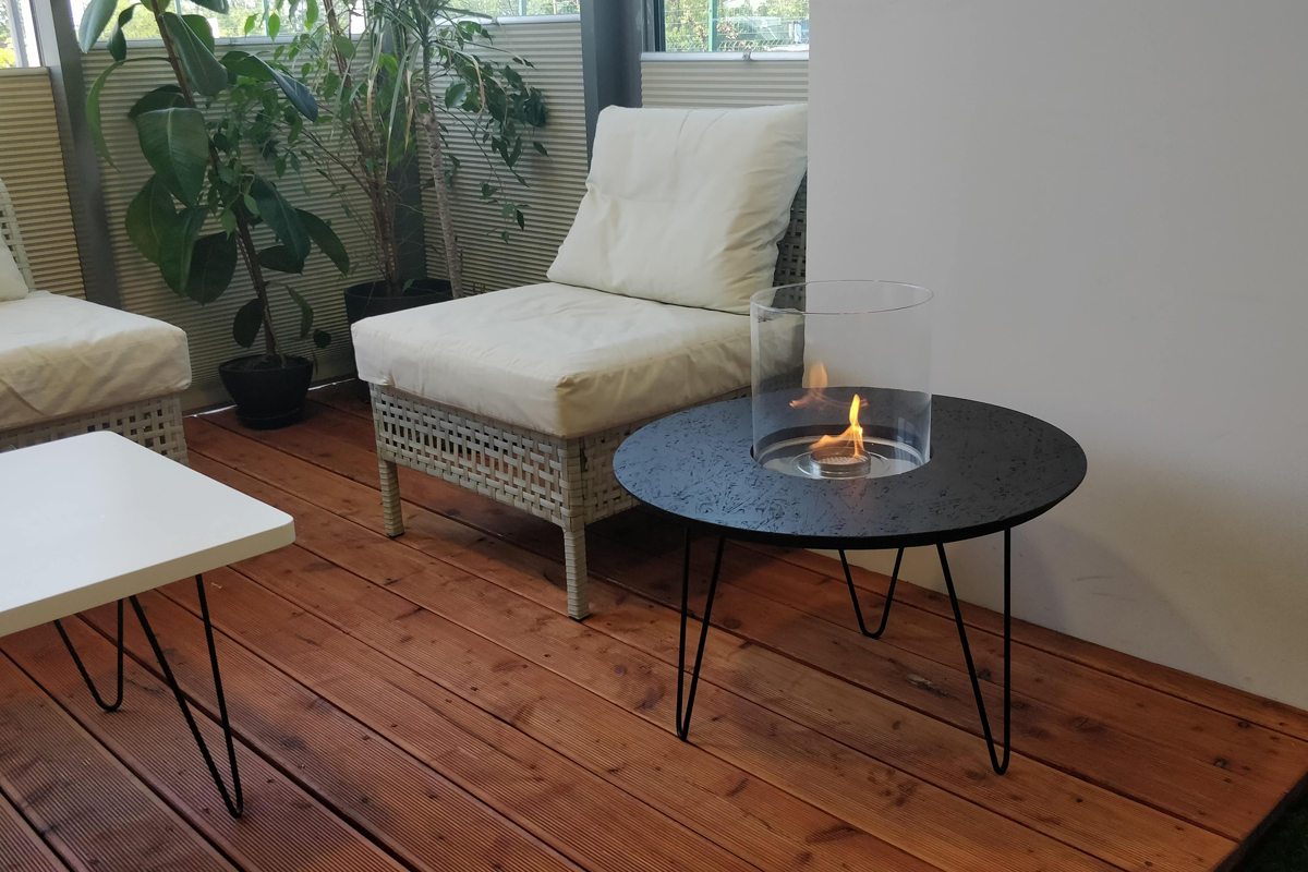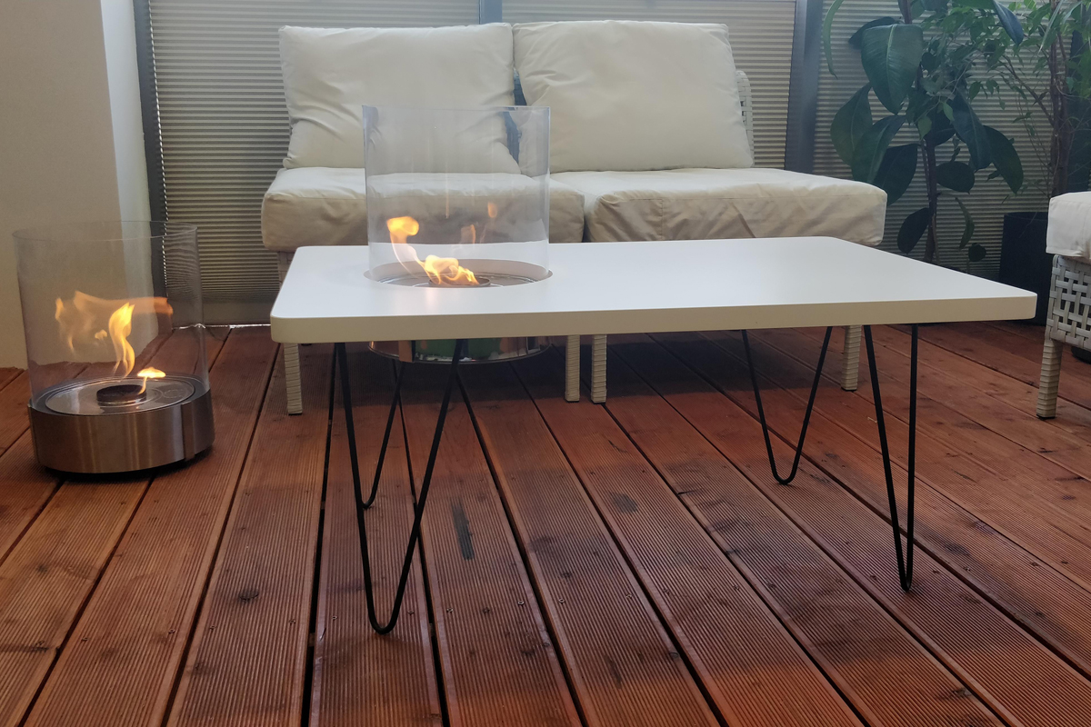 Столик-биокамин, независимо от модели, имеет мануальный источник живого огня с фирменной горелкой Commerce, внутри которой находятся керамические волокна с высокими впитывающими свойствами. Из таких горелок топливо не выливается, даже если камин перевернется.