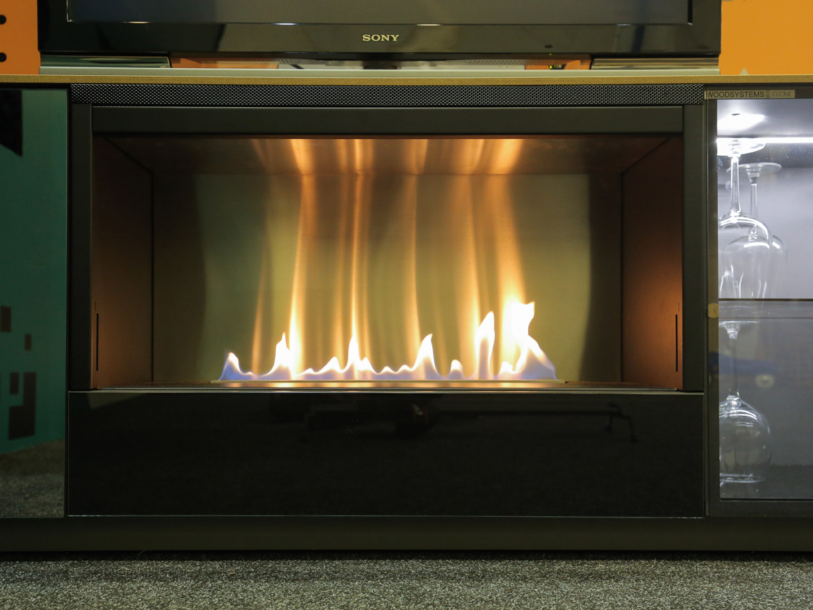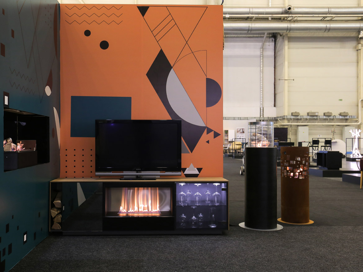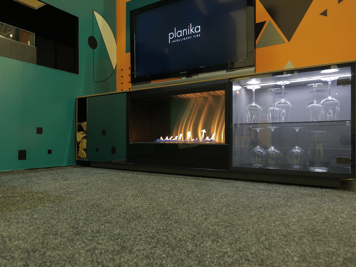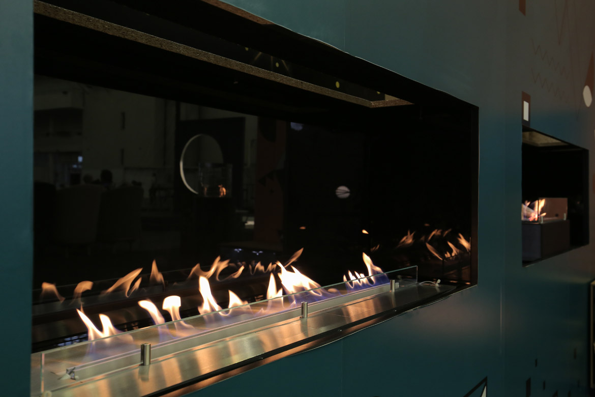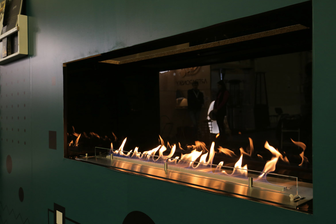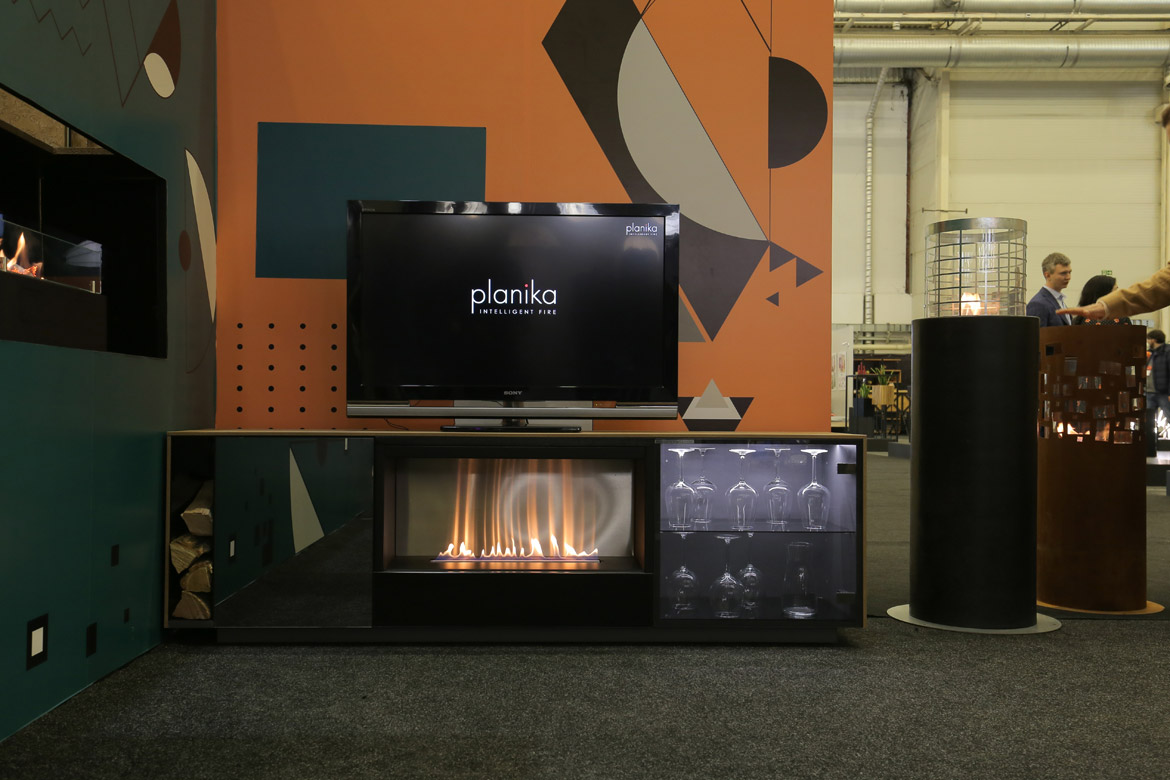 Пожалуй, ни одна выставка Planika не обходится без топовой модели бренда — FLA 3. На этот раз на стенде компании щеголял своим модерновым видом встроенный в нишу биокамин с линией огня 1190 мм.