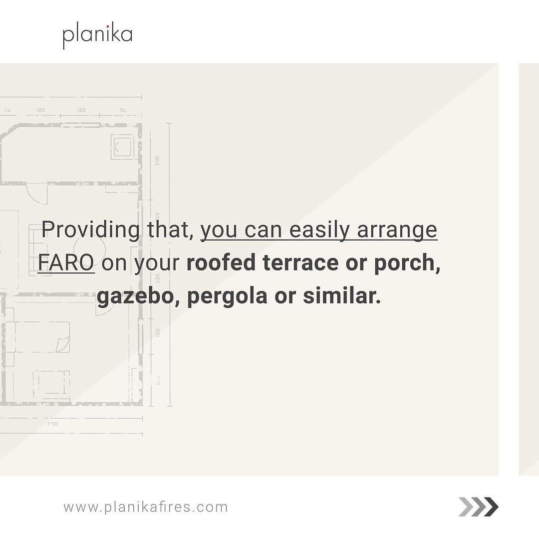 Этот великолепный переносной камин, предназначен для использования только на улице. Тем не менее, разрешается размещать его на открытом пространстве под крышей, при условии, что не менее 30% этого пространства открыто. То есть свой FARO вы сможете установить на крытой террасе, в беседке, под навесом (перголом) в своем саду.
