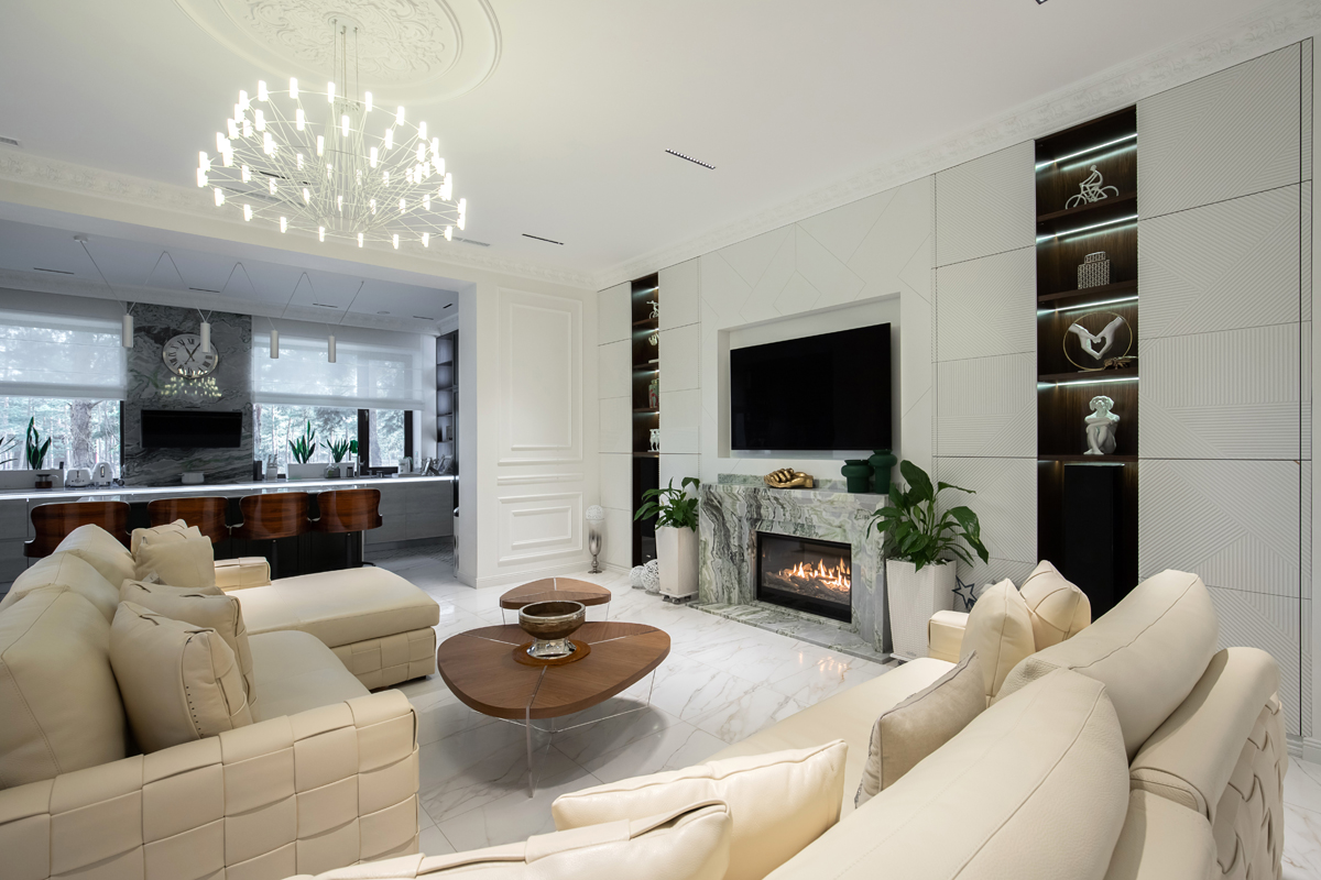 К примеру, используемый в представленном проекте газовый камин Versal Cassette, имеет возможность интегрироваться в систему «Умный дом», а также позволяет управлять им с помощью собственного ПДУ или со смарт-девайсов, на которых установлено фирменное приложение «Planika Control» (управление через Wi-Fi).