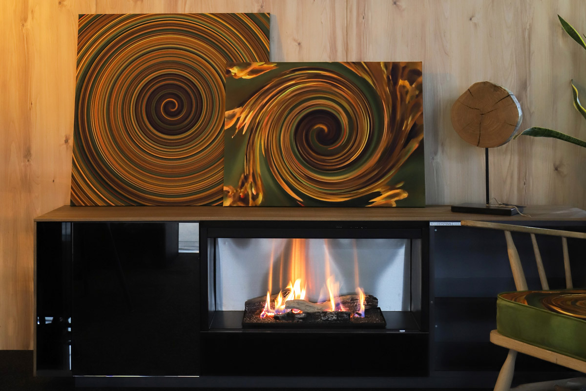 Вот какую мысль хотели донести представители дистрибьютора – этот биоэтаноловый камин может выступать, как готовое решение (камин и тумба в двух разных цветах) или как камин, под который можно изготовить индивидуальную тумбу под стиль своего проекта.