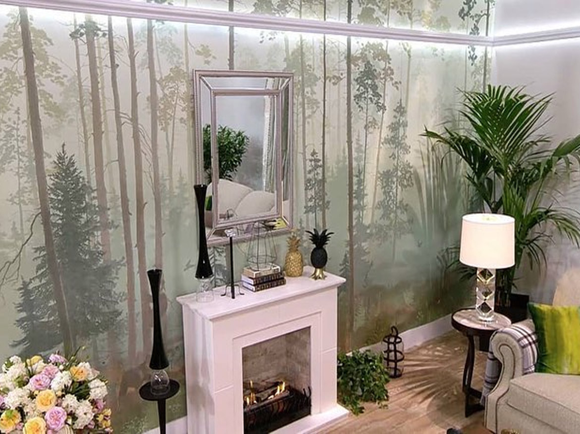 Дизайнер Ирина Кулешова создала в интерьерном театре программы «Мальцева» гостиную, идея которой навеяна мотивами флоры, фауны и образами жизни в загородном доме.