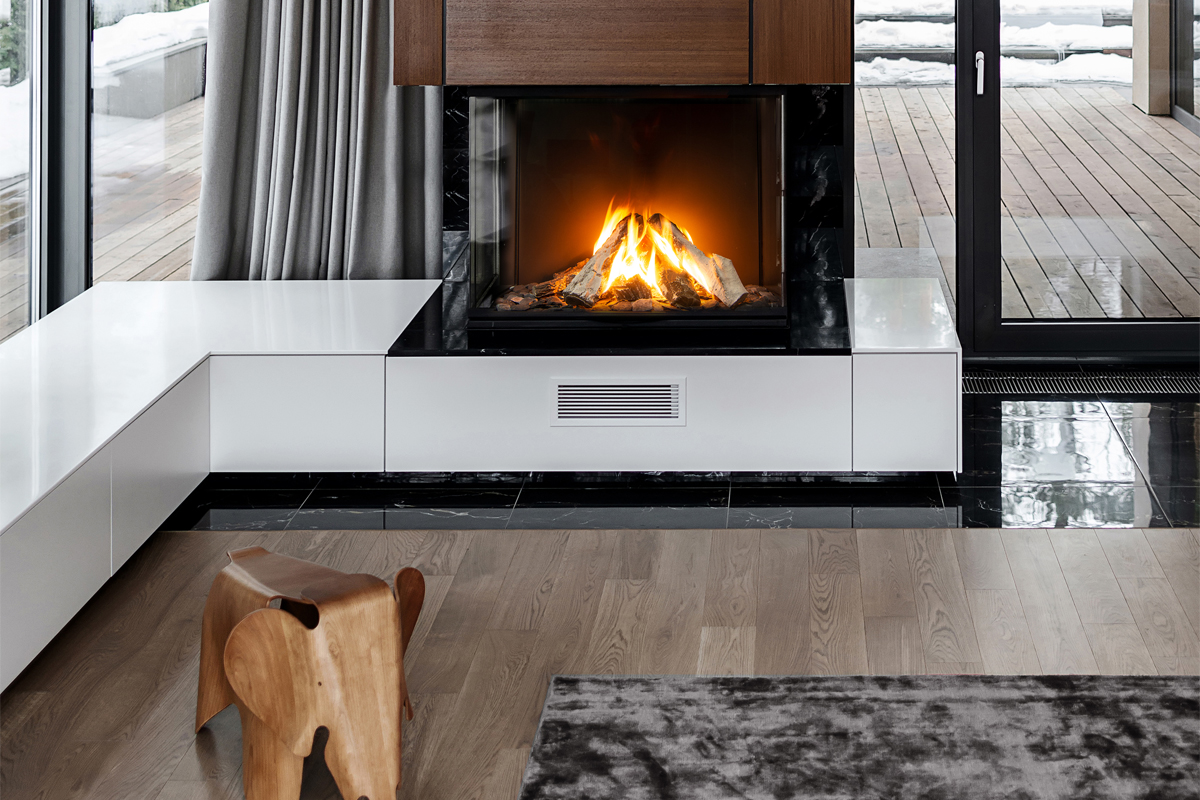Для корректной работы камина необходим постоянный подток свежего воздуха в камеру горения. Он может быть взят из помещения или с улицы. Если вы планируете подавать воздух с улицы, то необходимо заложить воздуховод под камеру горения камина. Если воздух планируется брать из помещения, то, как правило, это решается при помощи установки вентиляционных решеток, которые устанавливаются на лицевой стене газового камина.