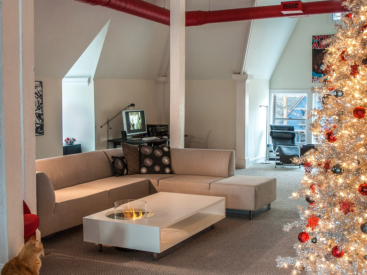 Камины обычно располагаются в центре комнаты, позволяя наслаждаться пламенем во всей его красе с разных точек помещения. Источник живого огня создает атмосферу комфорта и уюта, особенно это ощущается зимой. На Рождество празднично украшенный камин в интерьере становится таким же значимым, как рождественская елка. Окружающая обстановка, свечи, колядки, ароматы хвои, цитрусов, угощений — все это связано с этим временем года. Кроме того, биоэтаноловый и газовый камин не привносят в эту атмосферу никаких посторонних запахов. Что они несут, так это ощущение спокойствия и радости для семьи и друзей.