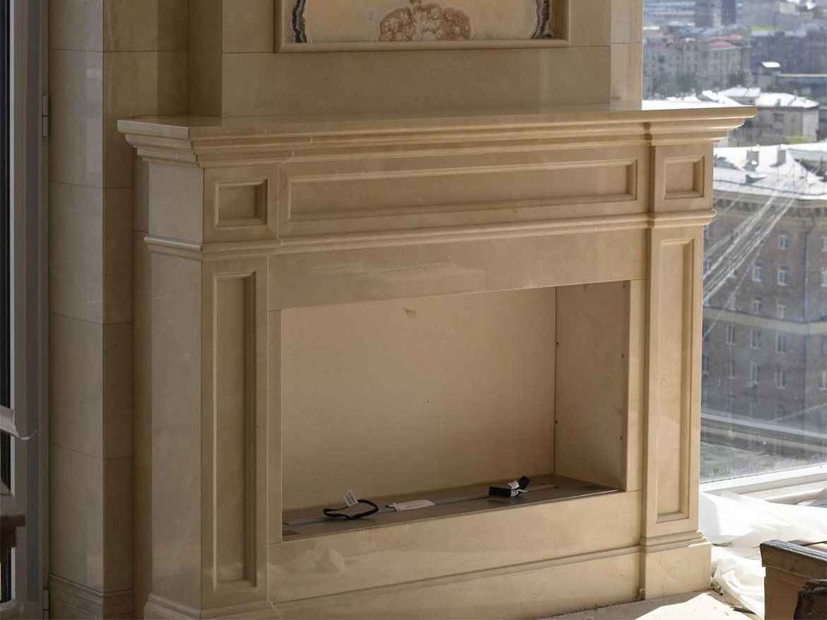 Для инсталляции в портал чаще всего применяют биокамин в связке с монтажным коробом (кейсингом), который обеспечивает и надлежащую термозащиту, и выступает контрастным фоном для пламени. Дымоход при установке не нужен, как и вентиляционная решетка.