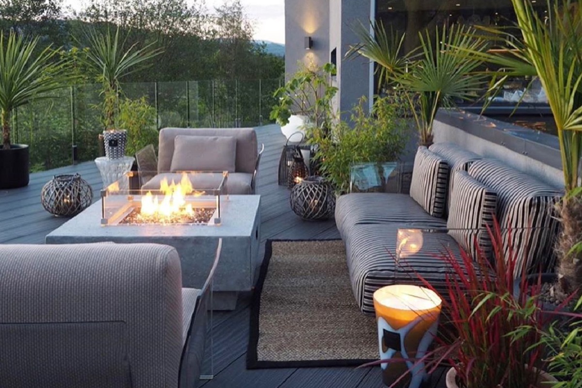 Здорово, когда у вас на заднем дворе есть уличный газовый камин, создающий ощущение домашнего уюта даже под открытым небом.