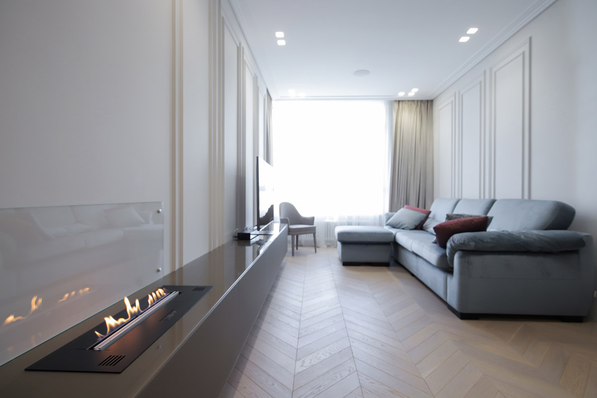 Дизайн-студия Image House представила свой новый реализованный проект, в котором в прямом и переносном смысле слова «засветился» биокамин от известного польского производителя. В интерьере гостиной дизайнерам удалось совместить элементы разных стилей, и эта эклектика смотрится гармонично, естественно и рационально.
