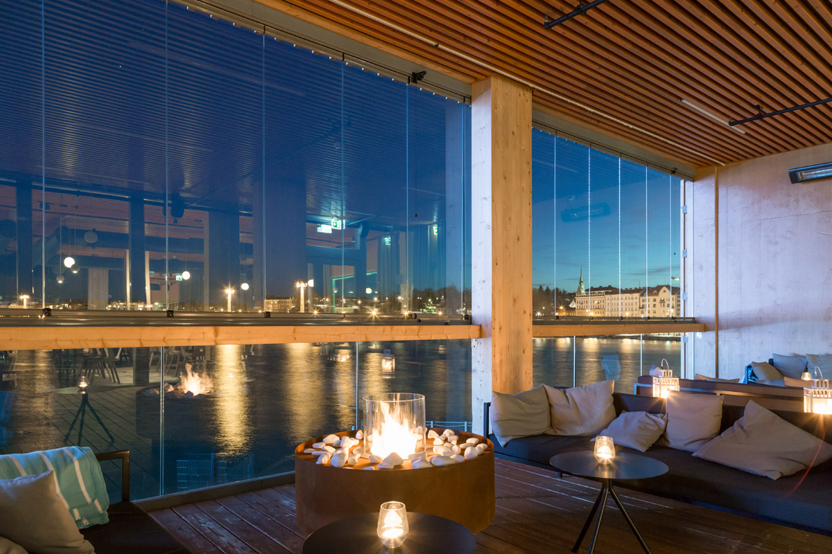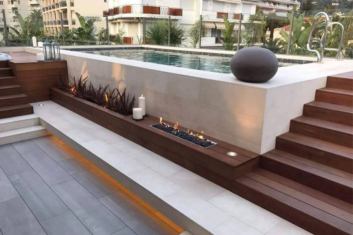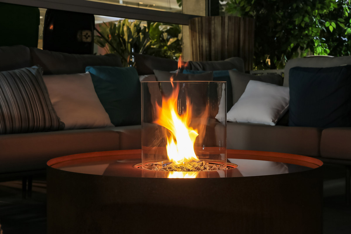 На большой террасе или балконе можно создать инсталляцию с Galio Insert, встраиваемым газовым камином линейной формы. Конструкция из нержавеющей стали отлично впишется в специальный пьедестал или даже в столешницу. Камин не требует дополнительных инсталляций и подключения к электросети, оснащен датчиком безопасности и имеет возможность регулирования высоты пламени.