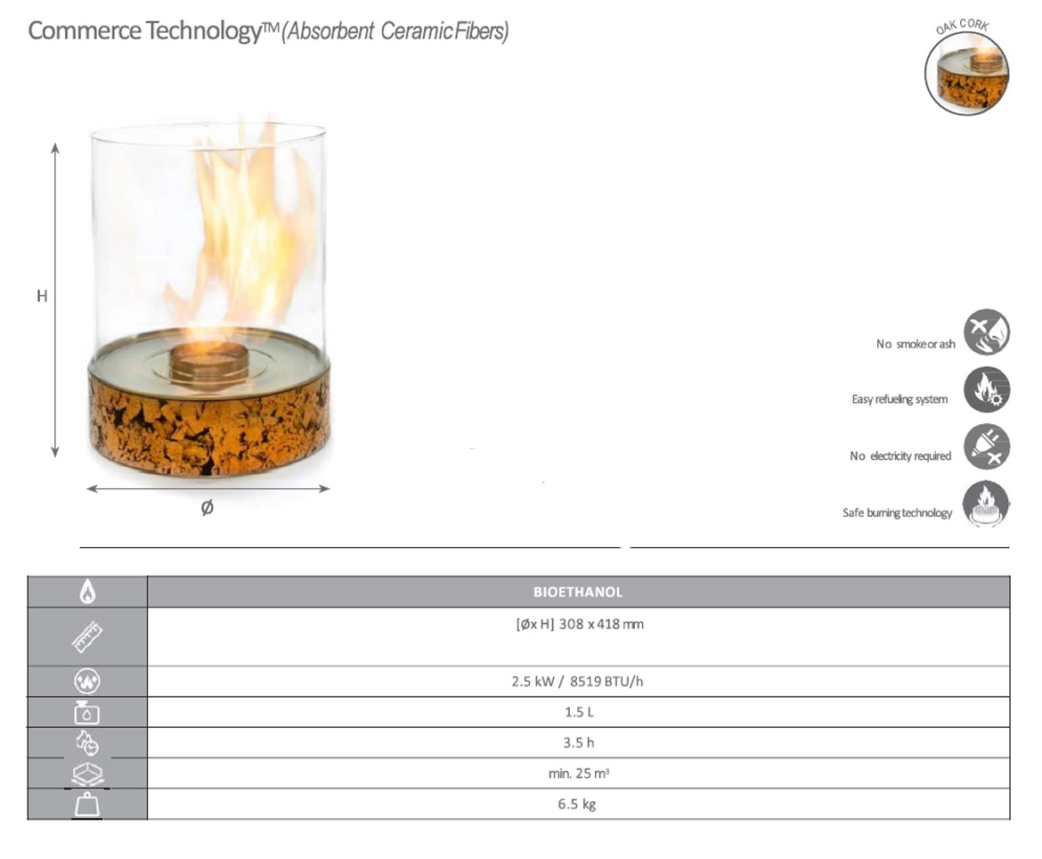 Портативный мануальный биокамин Dancing Flames цилиндрической формы предназначен для эксплуатации внутри помещений и под открытым небом. «Непроливающаяся» горелка с абсорбирующими керамическими волокнами внутри вмещает 1,5 литра топлива и готова дарить свой чистый, бездымный танец огня в течение 3,5 часов.
