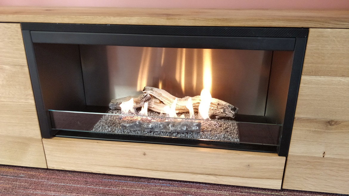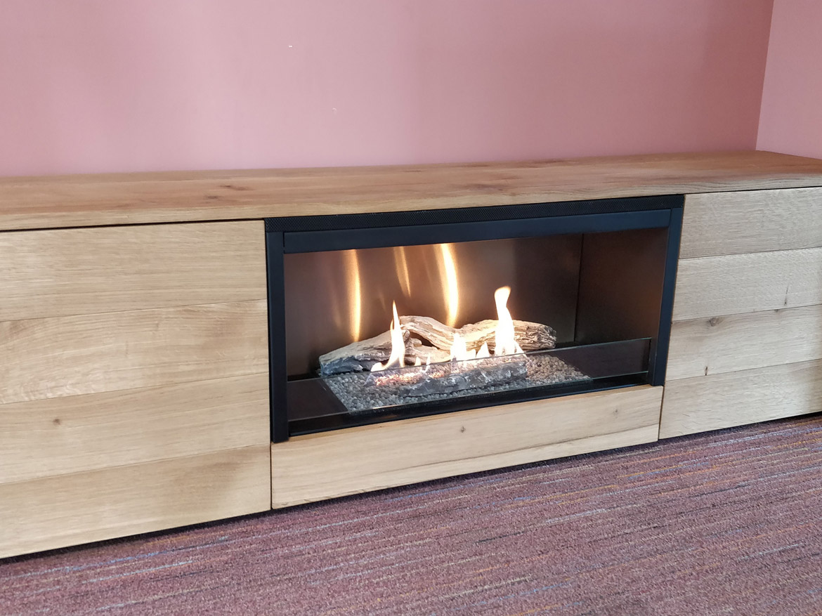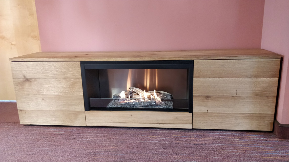 Для ТВ с большой диагональю — биокамины в мебели Planika Pure Flame natural oak veneer