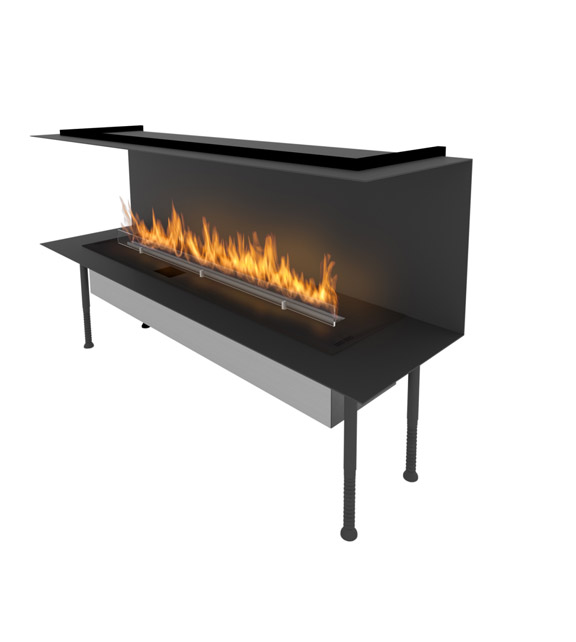Так фирменный кейсинг Casing ONE от компании Planika позволяет выстраивать вокруг флагманского биокамина межкомнатные разделители  всевозможной конфигурации. Устанавливаемая на четырех регулируемых ножках конструкция с горелкой может открывать для обзора пламя биокамина FLA 3 с двух, трех и четырех сторон.