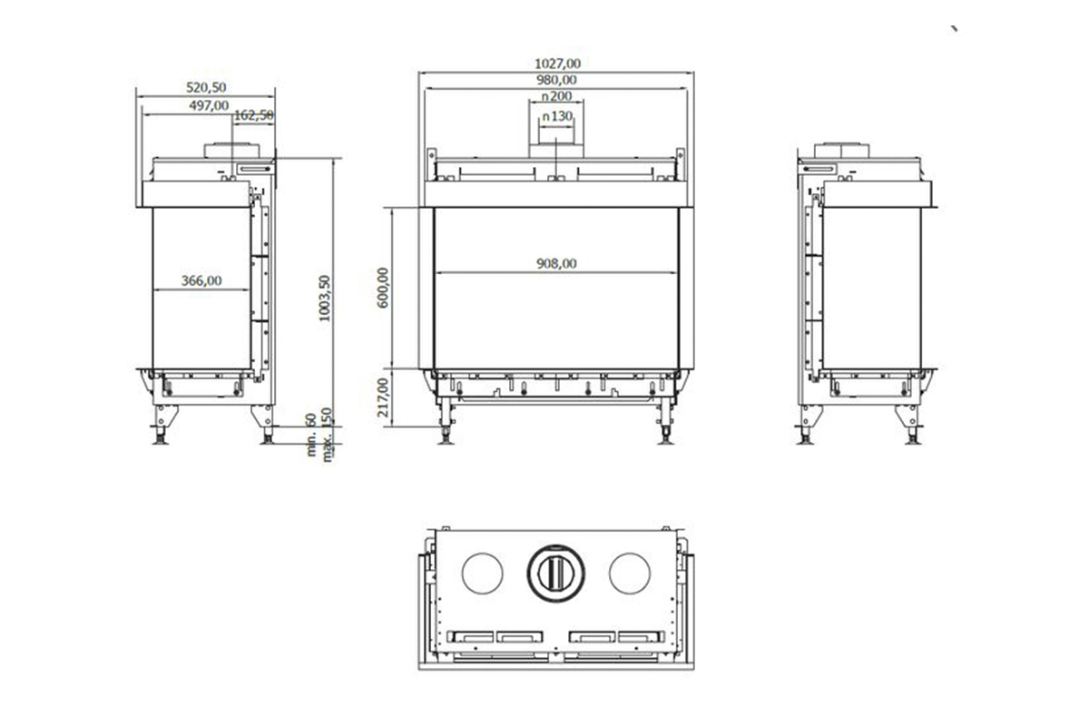 - Диаметр дымохода: Ø 130/200 мм (концентрическая труба)