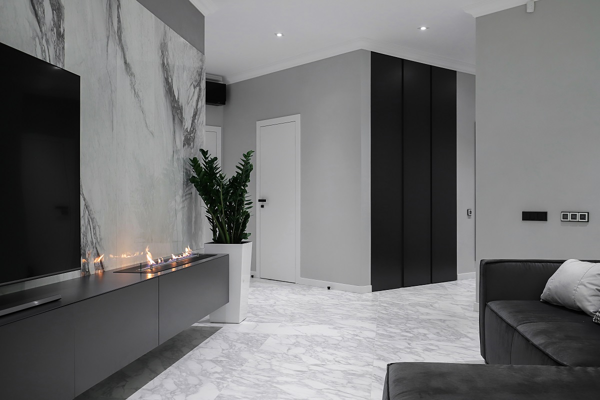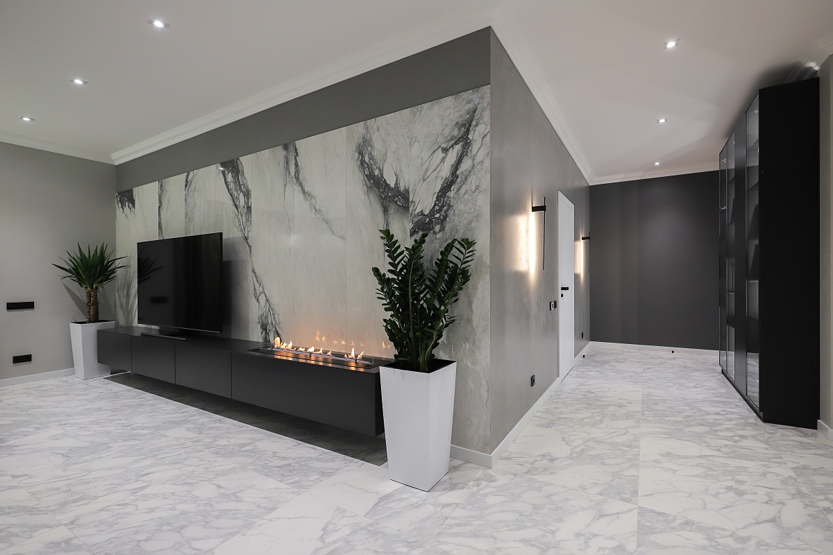 В проекте на фото представлен один из множества возможных вариантов установки автоматического биоэтанолового камина компании Planika.