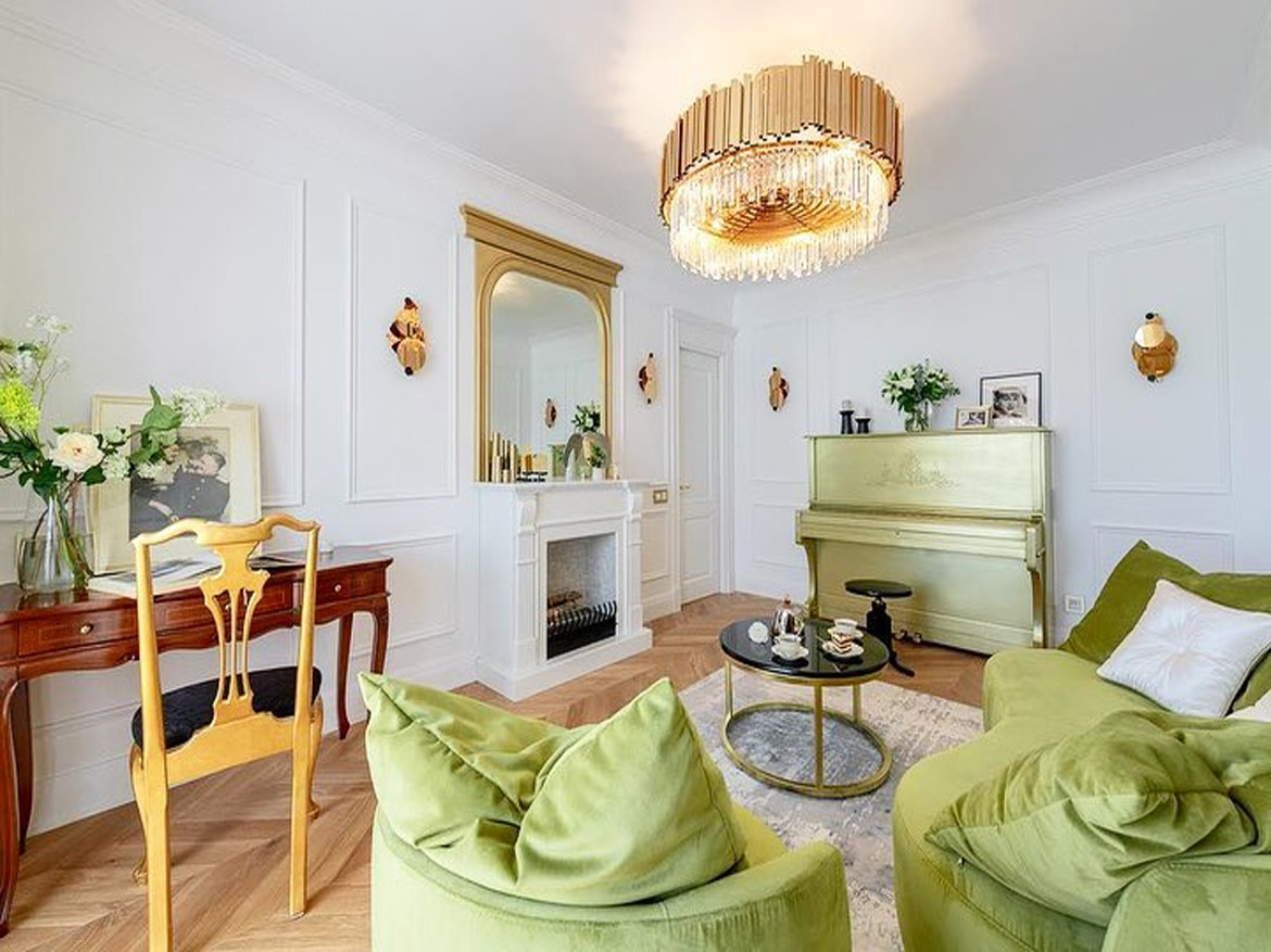Гостиную известной театральной и киноактрисы оформили в стиле современной классики. В оформлении доминирует белый цвет, белый и каминный портал, в котором установлен биокамин-вкладыш. Внешний вид камина также тяготеет к классике: декоративная решетка, рашпер, декоративные керамические поленья. Дымоход для этих экологичных устройств, использующих в качестве горючего дистиллированный этанол, произведенный из отходов сельхозпроизводства, не нужен. Не нуждаются они и в установке вспомогательных решеток вентиляции. Чистое пламя биокамина позволяет получать настоящее эстетическое удовольствие от огня, который не только не дымит, но и не выделяет токсины, пепел, сажу, неприятные запахи.