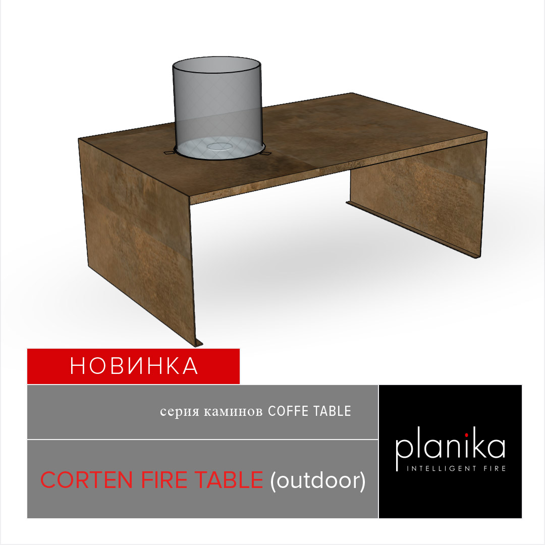 Кортеновая сталь – лучший материал для декоративных изделий, которые планируется часто или постоянно использовать на улице. Не зря из нее делают скульптуры и используют в судостроении. Биокамин Corten Fire Table также выполнен из бархатистого на ощупь и благородного на вид кортена. Точнее, из него сделана столешница, в которую встроена горелка Planika.