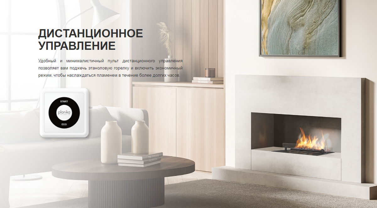 Біокамін SENSO Burner оснащений розумними датчиками безпеки, мікропроцесором, має вбудовану панель керування та пультом ДК.