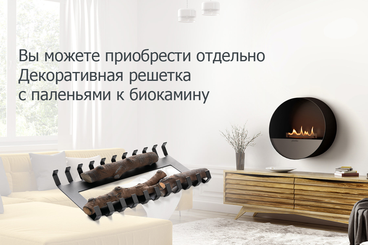 Грати та поліна не входять до комплекту біокаміну SENSO Bubble, їх можна придбати додатково.