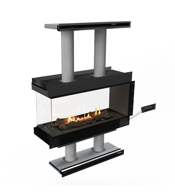 Камін на біопаливі сконструйований з двома вентиляційними отворами – одне внизу для всмоктування повітря і одне під стелею – тепло розподіляється рівномірно по кімнаті. Існує також можливість реалізації стіни із функцією нульового зазору.